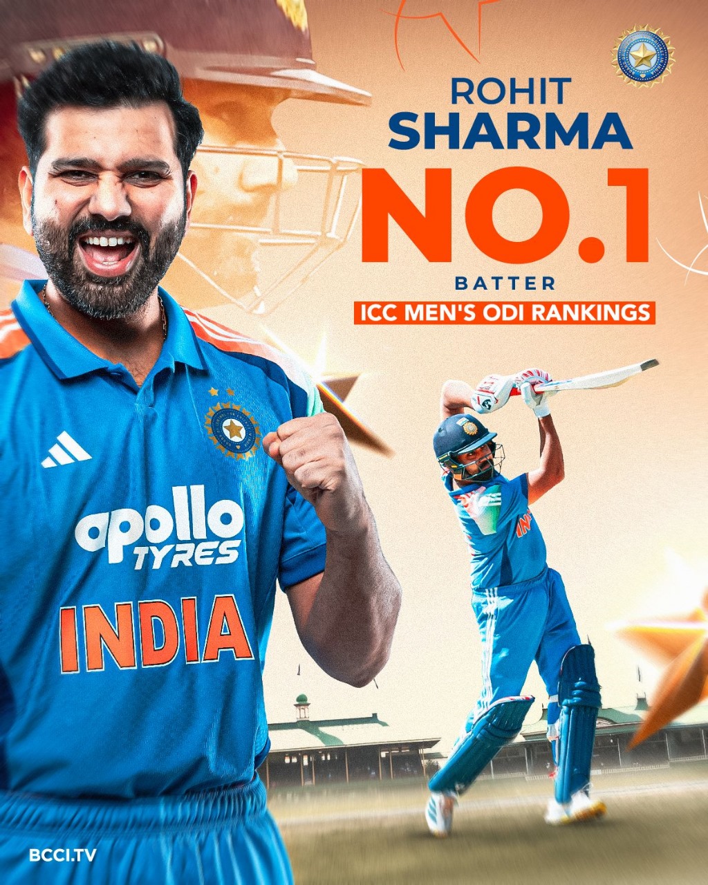 Rohit, who had last week 745 rating points to his credit, scored 73 runs from 97 balls at Adelaide Oval in the second India-Australia ODI on October 23 and in the third match played at Sydney Cricket Ground on October 25 not out on 121 runs from 125 balls. Due to two big shows with the bat by Rohit supported him gain important rating points (781 now).